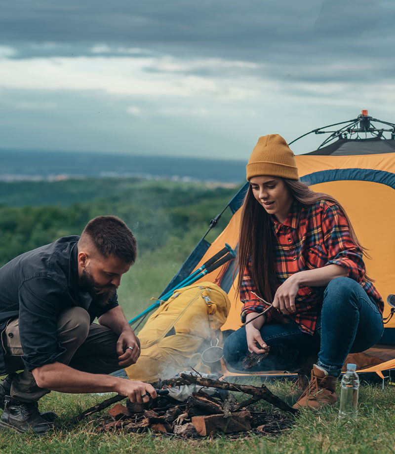 - Evite instalar tiendas de campaña en áreas expuestas o en lugares bajos con agua.