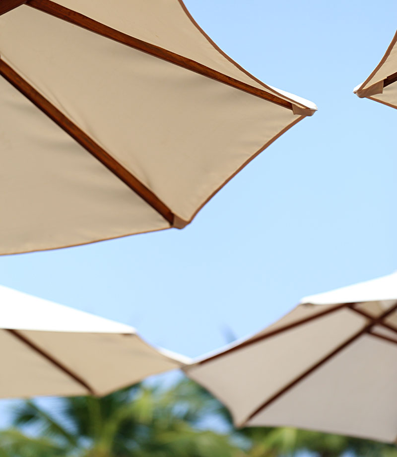 - Priorice los tejidos impermeables, resistentes a la arena y a los rayos UV.